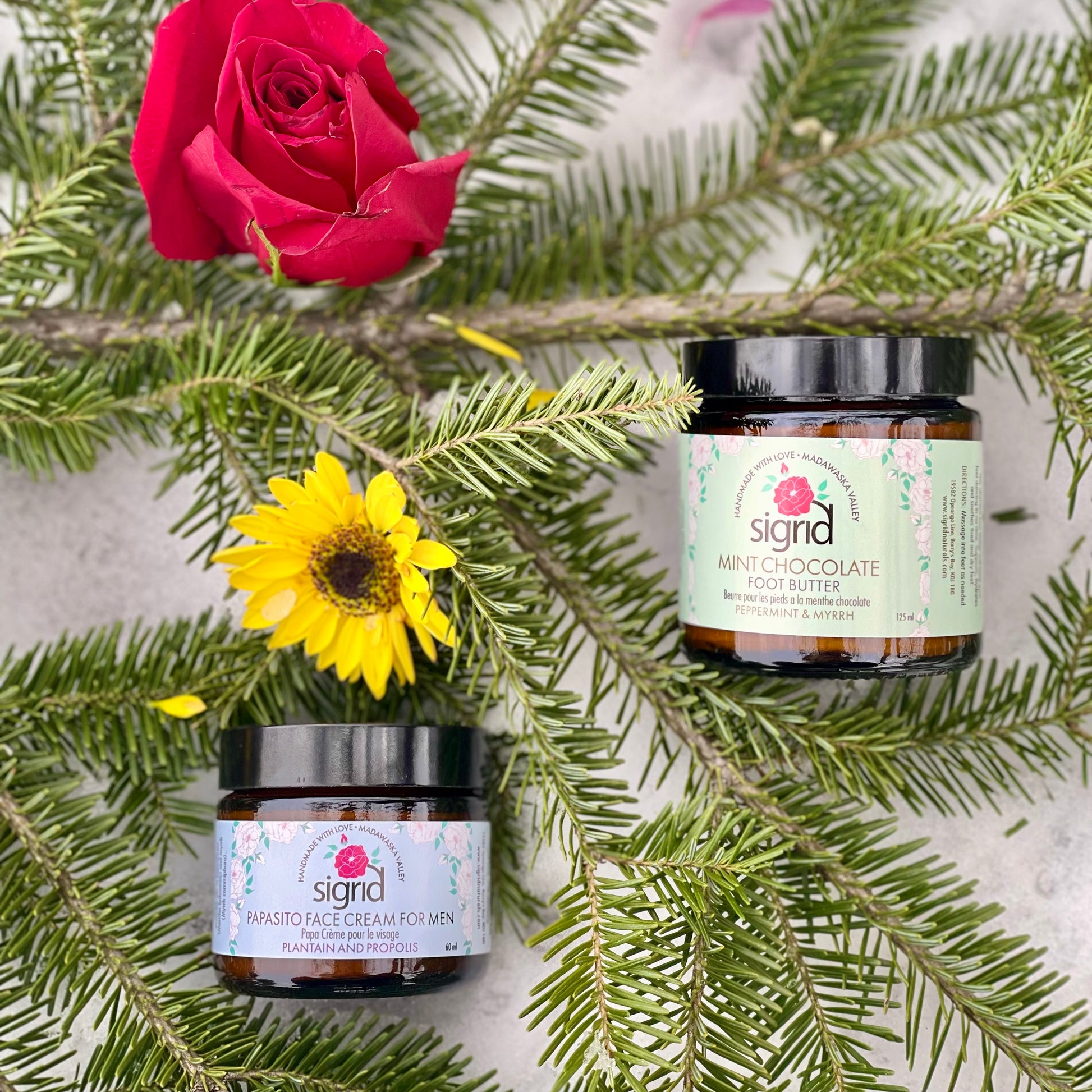 The Man Collection includes Papasito Face Cream for Men and Mint Chocolate Foot Butter.